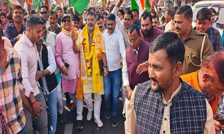 भाजपाइयों ने किरावली में निकाली विशाल एकता पदयात्रा