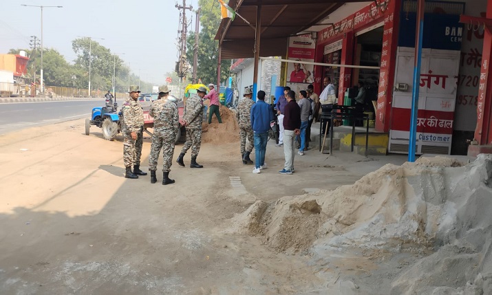 सड़क पर मटेरियल डालकर वायु प्रदूषण फैलाने वाले दुकानदार पर जुर्माना