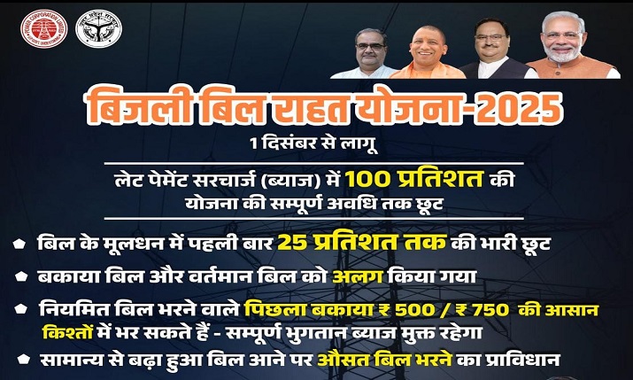 बिजली बिल राहत योजना 2025 में उपभोक्ताओं को 100% सरचार्ज माफी