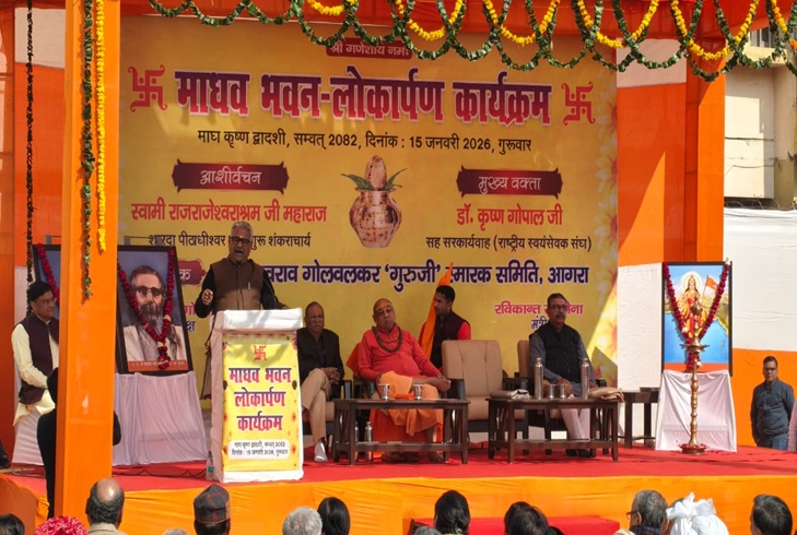 आगरा। राष्ट्रीय स्वयंसेवक संघ के जयपुर हाउस स्थित माधव भवन का पुनर्निर्माण के बाद गुरुवार को लोकार्पण किया गया। मुख्य अतिथि शारदा पीठाधीश्वर जगद्गुरु...