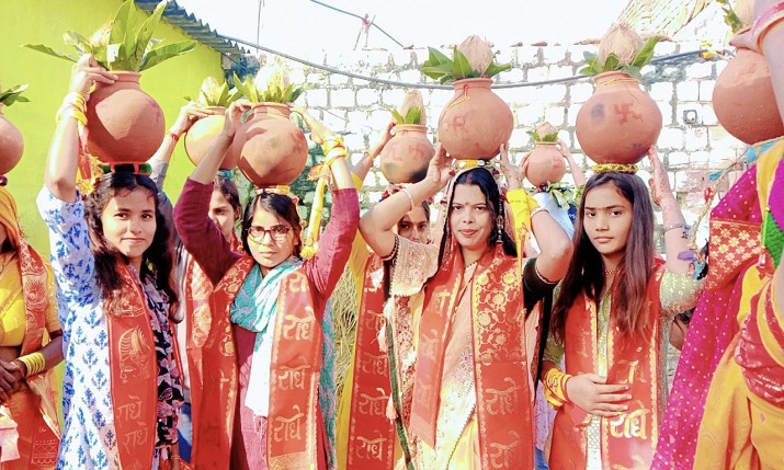 भागवत कथा प्रारंभ से पूर्व निकाली भव्य कलश यात्रा
