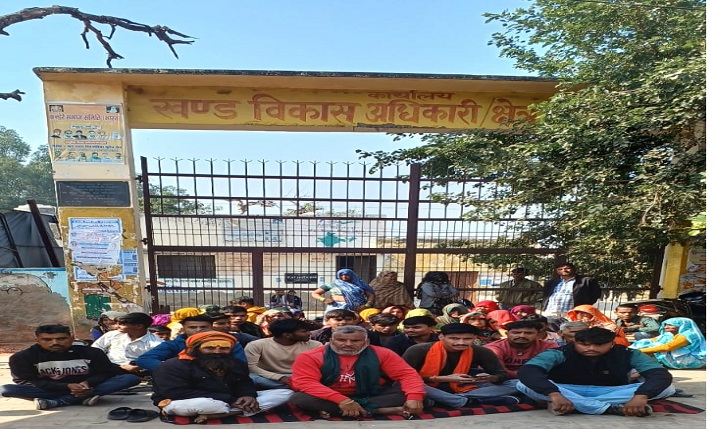 ग्रामीणों संग गौ रक्षकों ने ब्लॉक पर किया विरोध प्रदर्शन