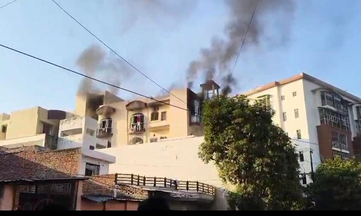 हरीपर्वत में फ्लैट में भीषण आग, पूजा के दीपक से उठी चिंगारी की आशंका; एक व्यक्ति झुलसा