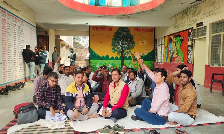पंचायत सचिवों का धरना प्रदर्शन आठवें दिन भी जारी रहा