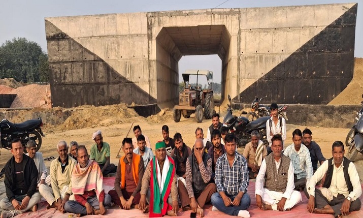 रेलवे पुल निर्माण को लेकर किसानों का अनिश्चितकालीन धरना पाँचवे दिन भी जारी