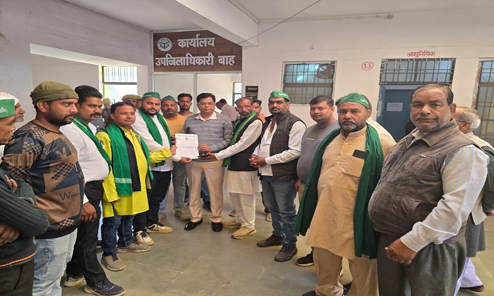 भू-माफियाओं द्वारा फर्जी बैनामों के विरोध में किसान यूनियन ने SDM बाह को सौंपा ज्ञापन